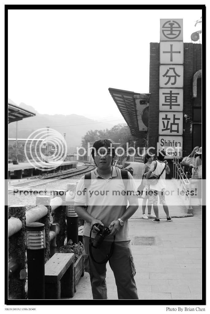十分車站,上圖這人是隨行的朋友.在十分車站前