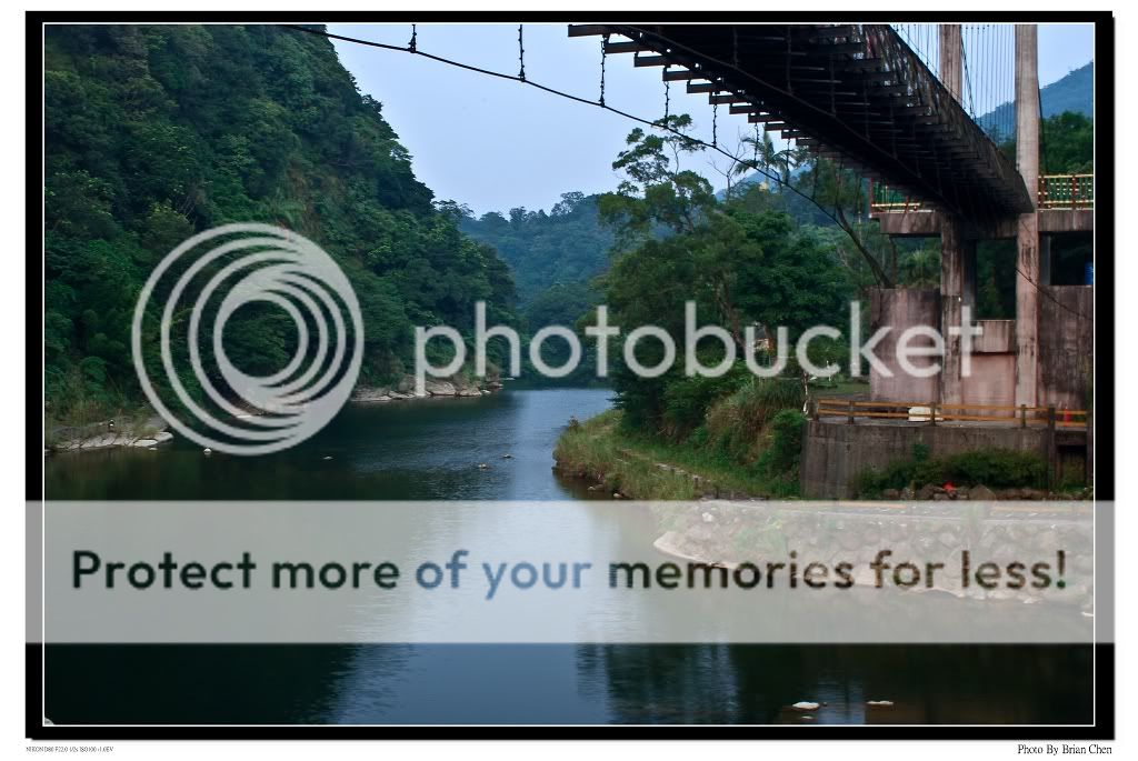 在瀑布旁還可以拍到美麗的溪流跟吊橋.看完這景色突然很想下水游泳消消暑氣.這天天氣實在太熱了.往吊橋那方走去就是往十分瀑布那頭.不過我們走過去十分瀑布那邊沒有開.有點可以惜.希望改天有開時能拍到美麗的瀑布.